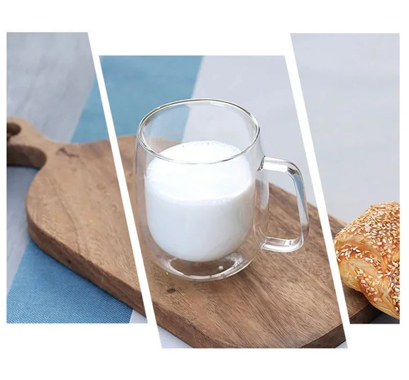 150-350ml Heat Resistant High Borosilicate Glass Mug Double Wall Glass Coffee Cup with Handle Milk Water Cup Clear Cups Gift