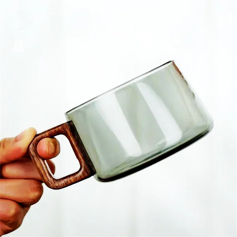 200ml American Latte Glass Coffee Mug With Wooden Tray Spoon Heat-resistant Milk Tea Cup Fresh Ground Coffee Cup