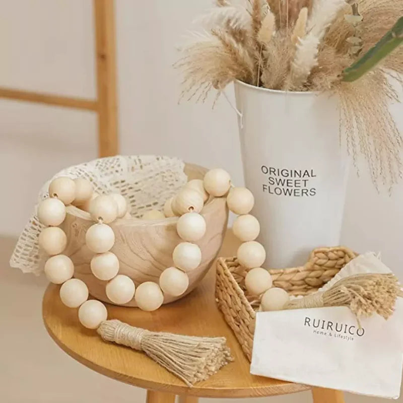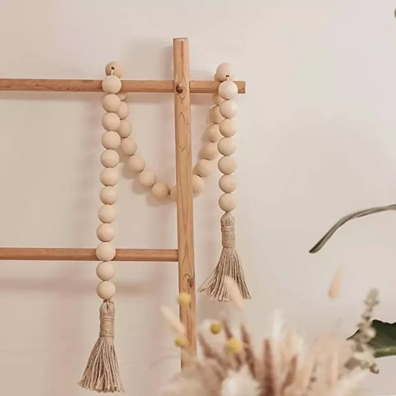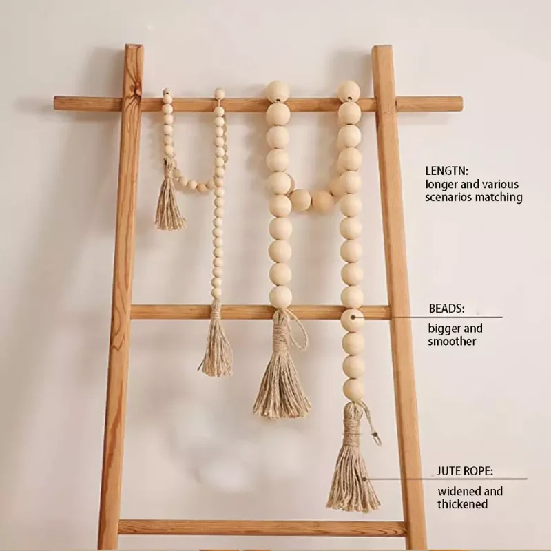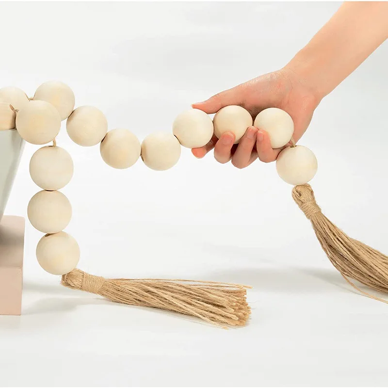 4cm Big Wood Bead Garland Tassel Room Wall Hanging Decor For Christmas Oversized Farmhouse Rustic Country Natural Bead Ornament