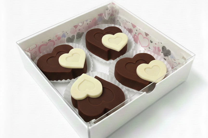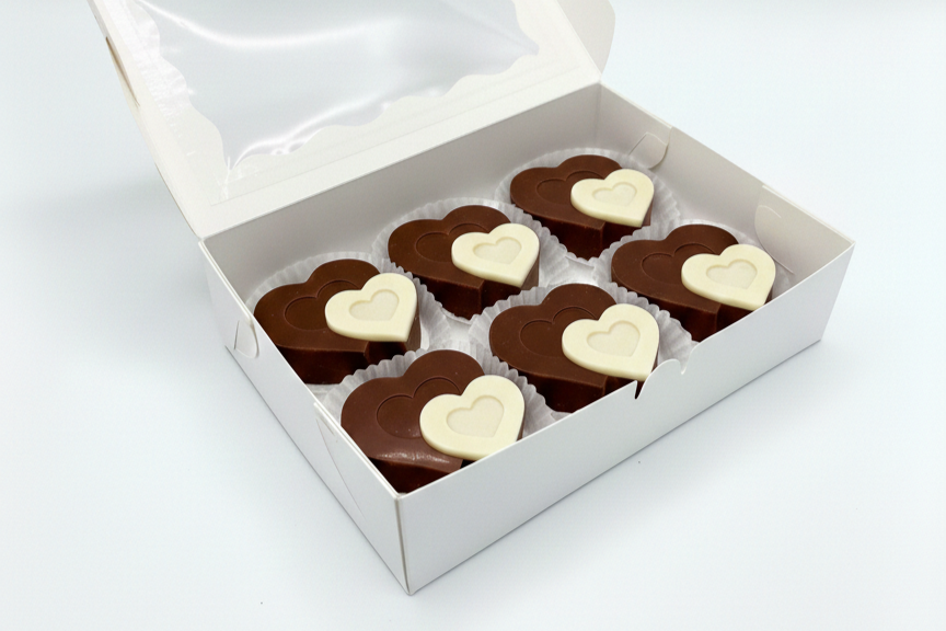 Dubbel hjärtformad choklad i mörk och vit design, fylld med slät vaniljkräm och krispiga bitar av Oreo. Den mjuka fyllningen tillsammans med den lätt bakade tårtbottnen skapar en rund och lekfull choklad med perfekt balans mellan sötma, crunch och krämighet.