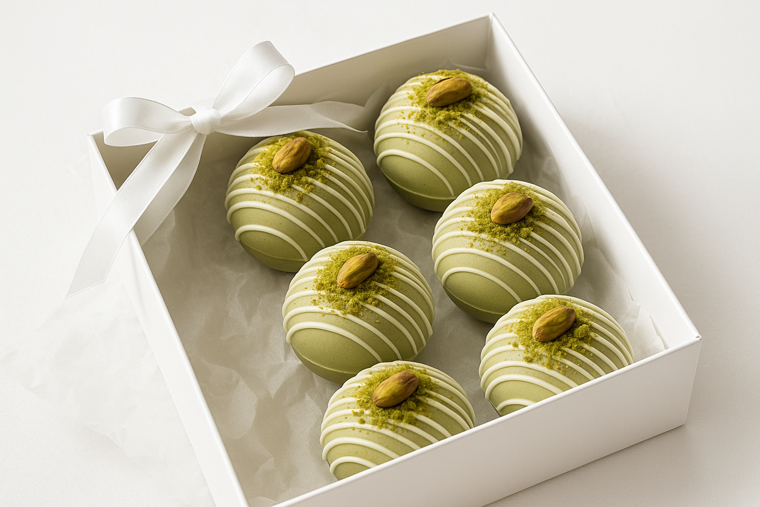 Dekorerade med en pistagedesign för ett elegant utseende – men utan nötter i ingredienserna.